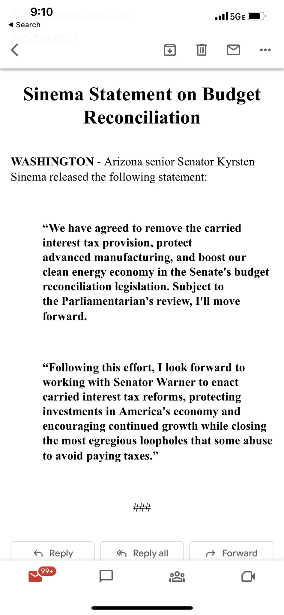 Igor Bobic On Twitter There It Is Sinema Gets Her Sacrificial Offering Plans To Vote Yes With Carried Interest Out Of The Bill Https T Co 3nercwsjru Twitter